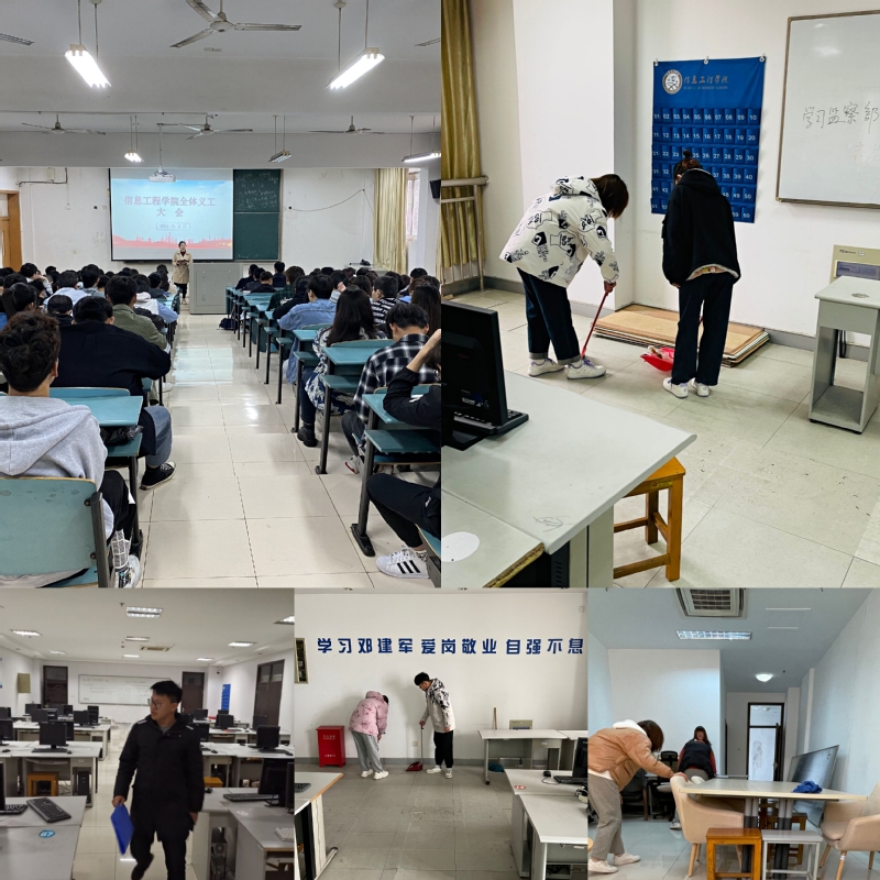 本學期伊始,信息工程學院組織義工同學進行學院3層實訓室、晚自習教室和辦公室衛生清理工作。截止目前,已開展300余人次的義務勞動。