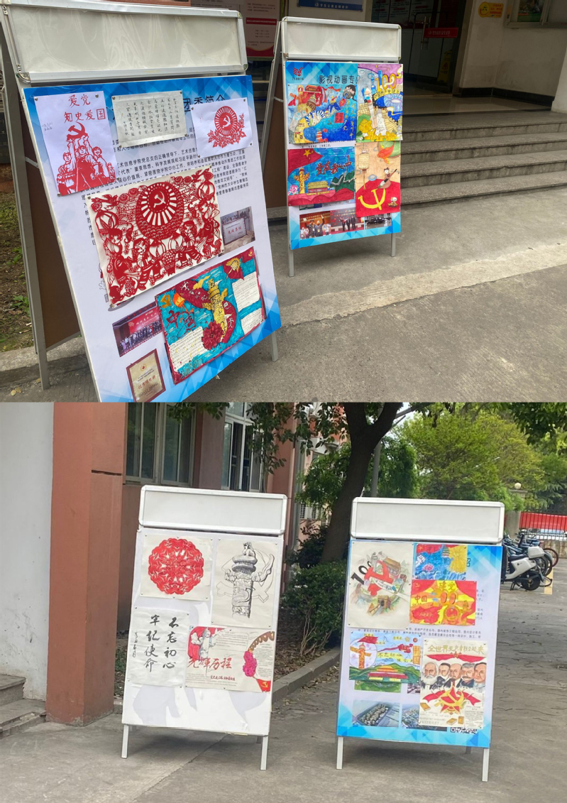 本次黨史進公寓活動采取作品征集的形式,藝術創意學院的學子們結合自身專業特色、藝術審美和興趣愛好進行創作,最終收到作品共計60余件,作品題材多樣,內容豐富,涵蓋繪畫、書法、海報、刻紙等多種藝術形式。一件件作品,象征著中國共產黨成立100周年的光輝歷程,同時也展現了藝術創意學院學生們對黨和祖國的無限熱愛,以及聽黨話、跟黨走,昂揚向上的精神面貌。