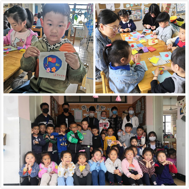 作品完成后,孩子們一一拍照留念,他們表示要將自己制作的黨旗黨徽和其他作品擺放在自己的床頭,還有的則想要將作品送給協助自己制作的學生志愿者作為禮物。一個下午,學生志愿者們和小朋友們歡笑不斷、其樂融融。