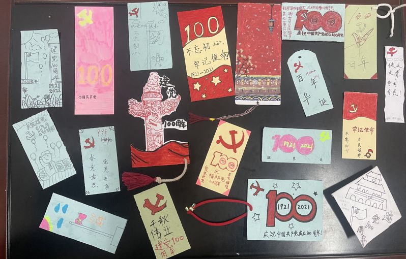 本次書(shū)簽制作分為“學(xué)史明理”“學(xué)史增信”“學(xué)史崇德”和“學(xué)史力行”四個(gè)篇章,以此來(lái)致敬黨的光輝歷程,謳歌黨的豐功偉績(jī)。活動(dòng)一經(jīng)發(fā)布,立刻得到廣大同學(xué)的積極響應(yīng)。薄薄一張紙,寥寥數(shù)行字,卻展示了同學(xué)們精湛的美術(shù)和文字功底,以及對(duì)黨和祖國(guó)的深厚情感。同學(xué)們制作的書(shū)簽外觀精美、內(nèi)容豐富、形式多樣,儼然成了一件件藝術(shù)品,充分體現(xiàn)了青年學(xué)子積極向上的精神風(fēng)貌。