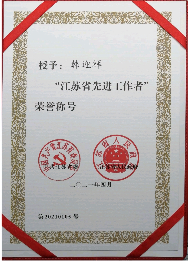 4月30日,2021年江蘇省勞動模范和先進工作者表彰大會在南京舉行。會上,我校智能控制學院副院長韓迎輝榮獲“江蘇省先進工作者”榮譽稱號。