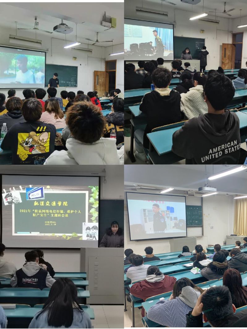 軌道交通學院組織各團支部開展防詐騙主題班會,鞏固學生防電信詐騙知識的學習情況,幫助學生將防詐騙知識內化于心。班會以觀看防詐騙視頻、安全知識競賽、防詐騙故事交流會等多種形式召開,增強了全體學生的參與感,筑牢預防電信詐騙的“防火墻”。