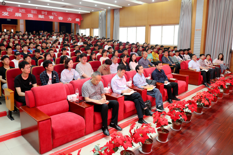 黨政辦公室、黨委宣傳部、黨委組織部負(fù)責(zé)人、信息工程學(xué)院全體師生聆聽了專題黨課。