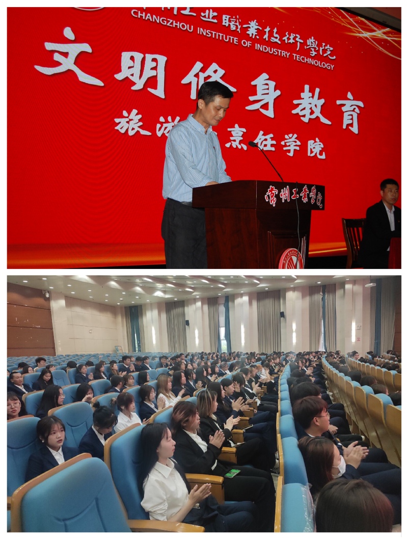旅游與烹飪學(xué)院分團(tuán)委書(shū)記鄭新濤,輔導(dǎo)員黃寧、楊天予和全體2019級(jí)、2020級(jí)在校學(xué)生參加講座。