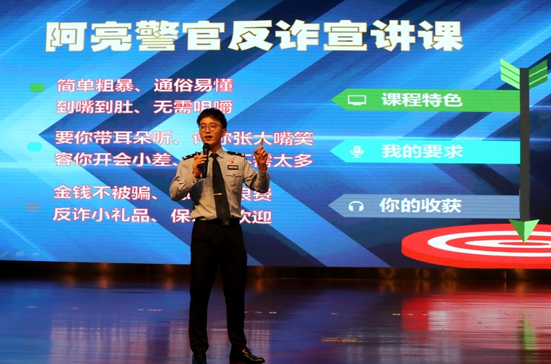 為深入貫徹打擊治理電信網絡詐騙犯罪工作的重要指示精神和《常州市“全民反詐”專項行動方案》文件要求,進一步加大學校反詐宣傳力度、密度、強度,切實增強廣大師生員工識別電信網絡詐騙犯罪的意識和能力,全力降低校園電信網絡詐騙發案率,常州市公安局武進分局團委副書記、公共關系科副科長、江蘇好青年百人、網紅警官“阿亮”——朱天亮走進我校開展專項宣講。常州市公安局武進分局、科教城派出所相關領導蒞臨現場指導。