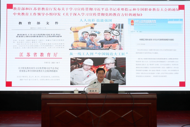 檀祝平通過宣講傳達了習近平總書記重要指示和大會精神。他認為,習近平總書記對職業教育工作作出的重要指示為新時代職業教育改革發展指明了方向,提供了根本遵循,全國職業教育大會的召開在我國職業教育發展史上具有重要里程碑意義。他強調,本次全國職業教育大會科學審視了職業教育的重要地位,充分肯定了我國職業教育的成績貢獻,以新的歷史起點全面梳理了我國職業教育的發展經驗,深刻分析了現代職業教育的發展機遇。