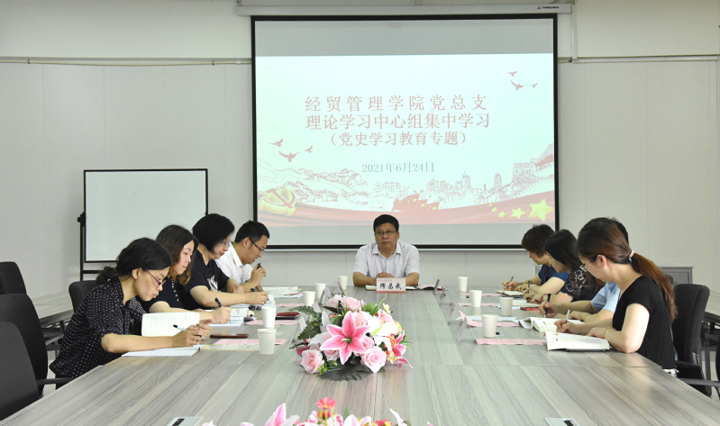 經貿管理學院黨總支理論學習中心組全體人員參加會議。