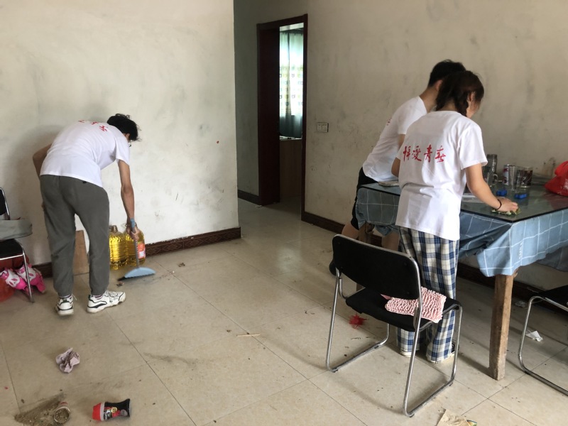 志愿者們每到一戶,都與幫扶對象進行面對面交流,細致了解他們的家庭情況、健康狀況、經濟來源、子女上學等情況,了解他們目前存在的困難和問題,并針對他們的問題進行細致登記,以便配合村委后期更好地開展幫扶工作。許多困難家庭由于家庭成員們身體不便,所以家里長期沒有打掃過,顯得十分雜亂。志愿者們還主動幫助村民們整理房間、打掃衛生。在志愿者們的分頭合作下,房子不一會兒就打掃得干干凈凈。村民們看著過去凌亂的房間一下子變得干凈整潔,連連向志愿者們道謝。志愿者們還陪伴家庭里的小朋友,陪他們做游戲,輔導他們完成暑假作業,用自己的實際行動為這些困難家庭做一些力所能及的事情。