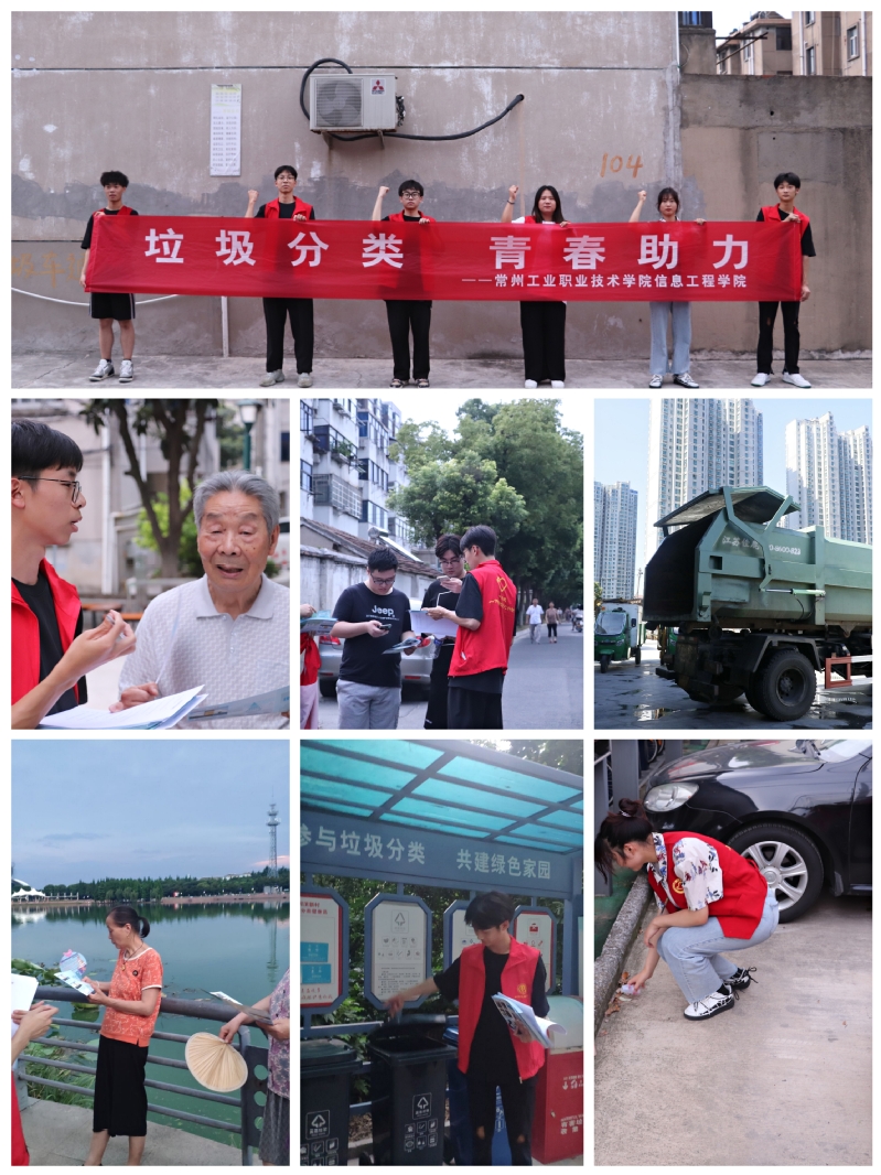 為響應習近平總書記提出的“金山銀山就是綠水青山”的號召,落實《關于進一步推進生活垃圾分類工作的若干意見》有關要求,深入實施“凝聚青春力量 助力美麗江蘇”專項行動,加入到讓天更藍、山更綠、水更清、環境更優美的美麗中國的建設中,信息工程學院“文明分類,‘益’路同行”環保小分隊于7月15日-18日集中開展了以“垃圾分類 青春助力”為主題的專項社會實踐活動。實踐隊員們迎著夏日的酷熱,走進社區,走上馬路,通過垃圾分類宣傳、采訪環衛工人、體驗環衛工作等多種形式開展暑期社會實踐。