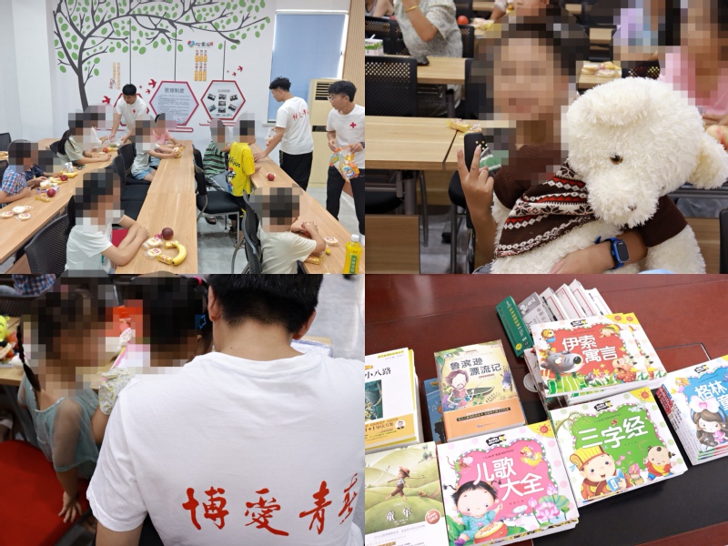 在社區服務中心的小教室里,志愿者們充當起老師的角色,用娓娓動聽的聲調、靈動有趣的課件以及一個個生動的例子帶領孩子們了解家庭生活技巧與暑期安全常識。孩子們渴望的眼神、課堂逐漸輕松的氣氛以及積極的互動都增加了志愿者們上課的信心,彼此在提問與交流中迅速拉進距離。志愿者們帶過去的文具、玩偶和書籍都當做禮物贈送給孩子,通過發放一張張問卷來收集孩子們潛藏內心的希望和夢想。在課堂的最后,志愿者們將之前活動募捐到的書籍、畫冊和抗疫禮包捐贈給社區中心,希望同學們的愛心和關懷能在這里延續。
