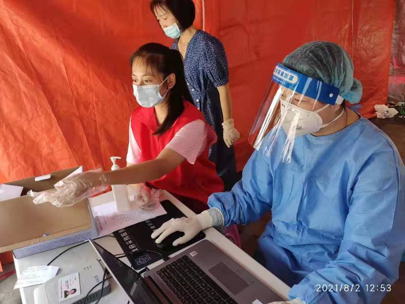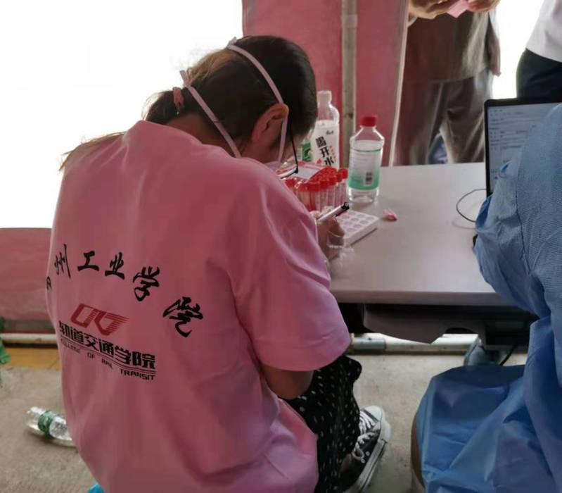“爺爺您好,請戴好口罩!”“奶奶,拿好試管往這邊走!”“139……”隨著天氣越來越熱,在檢測點井然有序的工作中,志愿者們大汗淋漓,排隊的人群里卻沒有一句抱怨。“核準,再核準,張軍潔,聽你最后確認了,我再錄入電腦系統!”醫務工作負責人笑著看了她一眼說,“我相信你的黨性覺悟,因為你是一名合格的入黨積極分子,是軌道學院分團委副書記!”“我們是大學生團員,在國家和人民危難時刻來一線參加志愿服務工作,請組織相信我們!”張軍潔慷慨激昂地說。