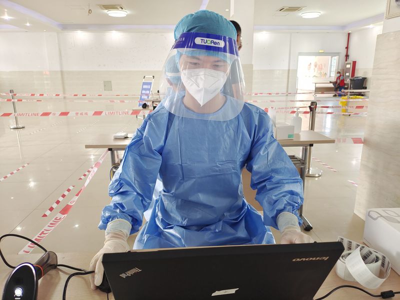 疫情發生后,南京疫情防控形勢嚴峻,人手不足,20室內332班胡煜同學當得知南京地區在緊急向社會招募疫情防控志愿者時第一時間報名參加,經組織安排,她加入到南京市江北新區天景社區龍湖天街疫情防控志愿者的隊伍中。她每天主要負責撰寫疫情防控信息稿、做好南京祿口機場返回人員統計及疫情排查表;為居民辦理健康證明和通行證,測量體溫,檢查蘇康碼和行程碼;為需要進行接種的人員發號,維持現場秩序,確保能讓他們盡快接種疫苗,為不方便的人提供幫助等工作。她說:“雖然每天的工作非常忙碌,但是能為抗疫工作貢獻自己的一份力量,感到很自豪,我相信南京一定能打贏這場戰役!”