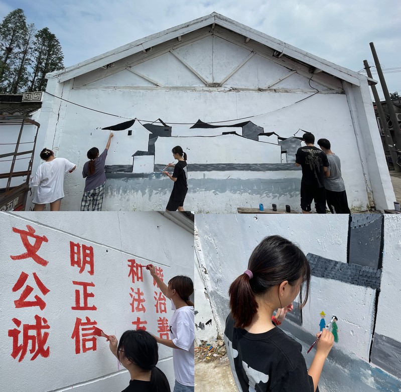為了推進美麗鄉村建設,改善農村人居環境。藝術創意學院暑期社會實踐團隊前往嘉澤鎮三星村繪制文化墻,用畫筆為鄉村振興奉獻青春力量。