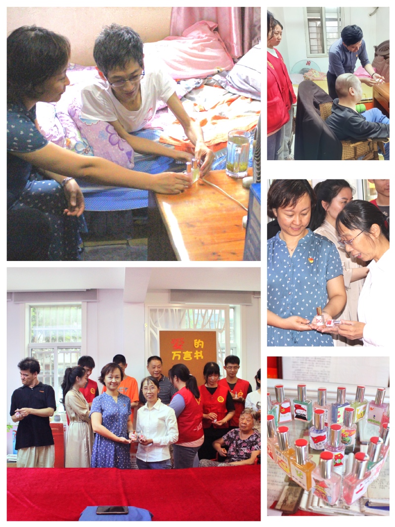 前調青草香,寓意不忘初心,扎根人民的使命;中調雪松,寓意革命先烈堅韌不拔的品質;后調乳香,象征著黨如母親一般的關懷。材料學院暑期社會實踐團積極發揮藥品生產技術和精細化工技術專業特長,經過設計方案、配香、溶解、調香等近十個步驟,自制“紅色華誕”愛國香水。學院積極開展為“紅色”香水征名及手繪紅色標簽等主題活動,學生踴躍參與,集思廣益,以‘初心’、‘百年’、‘征程’等紅色元素給香水命名,一瓶瓶寄托著常工業學子愛國之心的手工香水應運而生,由志愿者們親手贈送給社區孤老、殘老、弱老、居委會工作人員和宿管阿姨等群體,給他們送去溫暖和關懷,對他們長期以來的辛苦付出表示感謝。