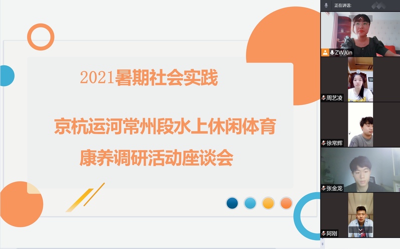 線上座談會上,根據《計劃》文件精神,師生總結分析了此次暑期社會實踐,就運河沿岸水上休閑體育行業背后的機遇、如何普及水上戶外運動項目的體旅融合,以及目前存在的問題等方面暢所欲言,展開了熱烈的討論。