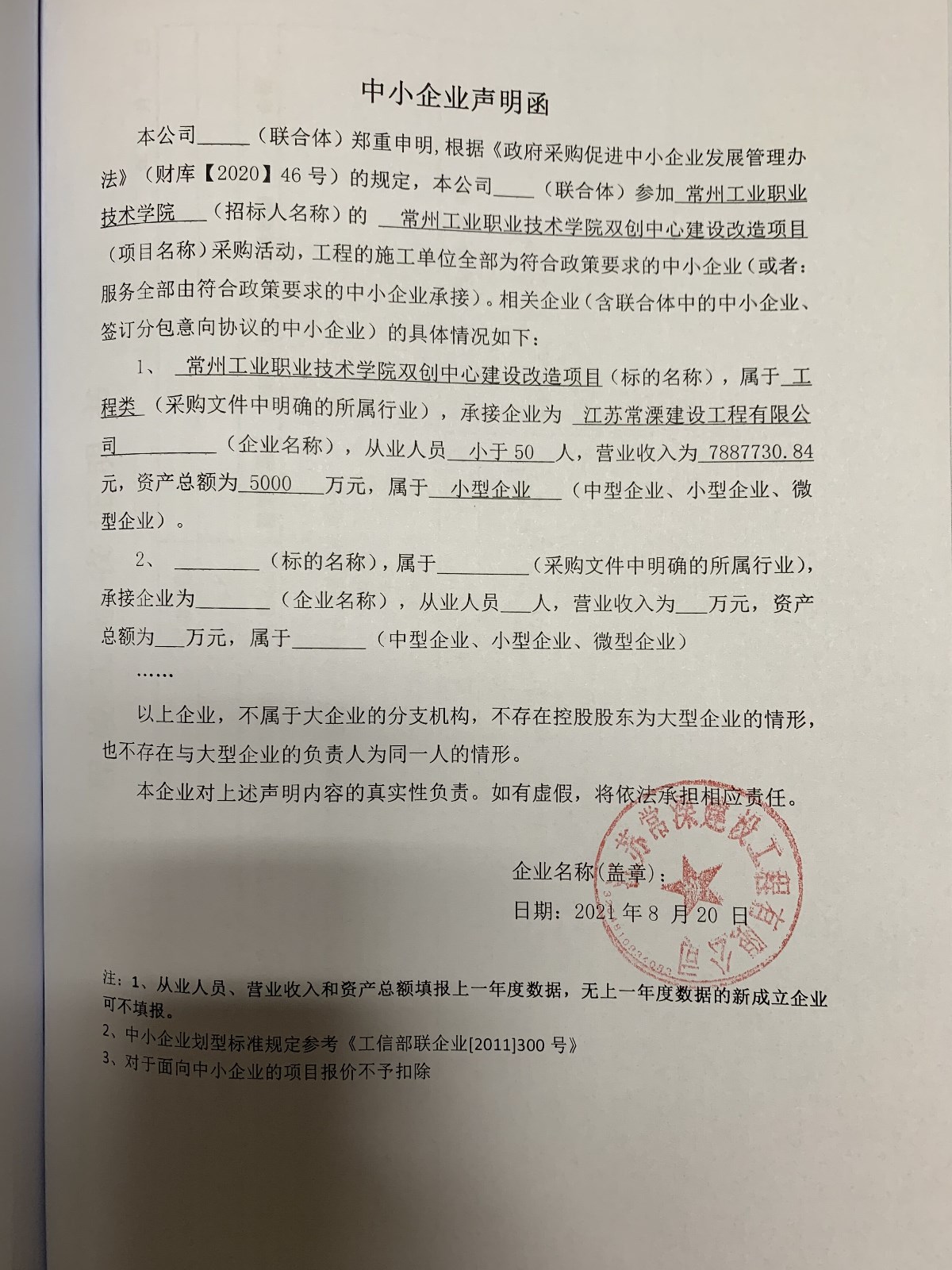五、評審專家名單: 秦義、孟亞菲、王明芳、沈琪、徐新巧 六、代理服務收費標準: 服務費收費標準:以中標金額為基數,收費比例按差額定率累進法計算:100萬元(含)以下1%,100萬元—500萬元(含)0.7%,再下浮20%。 七、公告期限 自本公告發布之日起1個工作日。 八、其他補充事宜 無 九、凡對本次公告內容提出詢問,請按以下方式聯系。 1.采購人信息 名 稱:常州工業職業技術學院 地 址:常州市武進區鳴新中路28號 聯系方式:0519-86335166 聯系人:司馬老師 2.采購機構信息 名 稱:常州常投招標有限公司 地 址:常州市武進區延政中大道17號金源大廈18樓 3.項目聯系方式 采購文件相關聯系人:朱雯 電 話:0519-85857862 開標評審相關聯系人:朱雯 電 話:0519-85857862 十、附件 1.采購文件 2.中小企業聲明函