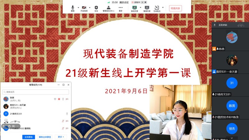 在疫情防控背景下,為更好地協助2021級新生完成線上入學報道等相關工作,9月6日,現代裝備制造學院輔導員陳茜組織本班學生開展21級新生“線上開學第一課”,針對開學相關事宜進行說明和解釋。本次班會由陳茜主持, 155名2021級新生參加會議。