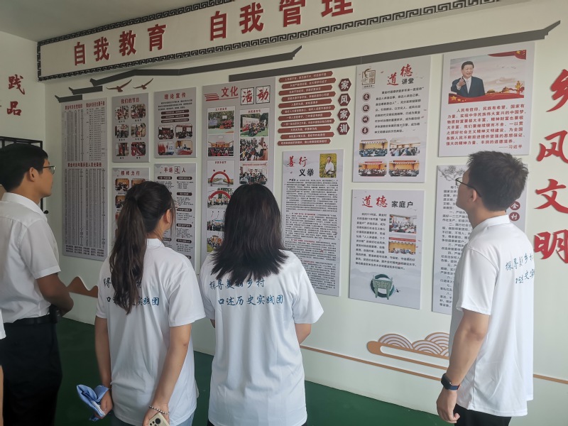 從黃金村靳書記口中,我們得知黃金村每年都會評選“道德家庭戶”和“道德模范戶”稱號,以此來激勵村民崇德向善,營造文明村風民風。每半年會召開一次村民代表大會,商討村里重大決策及村務情況,征求群眾意見,群策群力。我們參觀黃金村黨史文化墻、文化長廊,一幅幅生動形象的圖片,無不在展示著黃金村的精神文明建設成效。我們還發現,黃金村充分利用稻田地理標志,在黃金稻田中修建稻米文化館、勞動體驗館,與中小學合作開展學生勞動實踐教育活動。