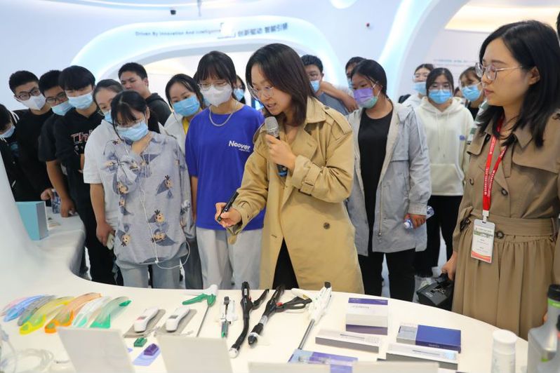 一點(diǎn)半,一行人來(lái)到了薛家鎮(zhèn),開(kāi)始了今天的參觀。首先參觀了生命健康產(chǎn)業(yè)園區(qū)展廳,展廳中陳列了薛家鎮(zhèn)大大小小的企業(yè)產(chǎn)品,隨著解說(shuō)員的介紹,同學(xué)們也興趣滿滿,好奇的大量著高科技生產(chǎn)設(shè)備、琳瑯滿目的藥品等。