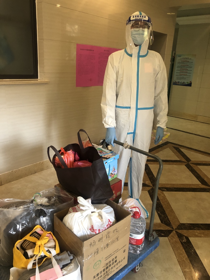 11月3日常州通報發現新冠疫情后,市文明辦、團市委、市志愿服務聯合會根據市疫情防控應急指揮部部署要求,向全市招募儲備應急志愿者,我院黨員教師盧劍偉第一時間響應號召,報名了疫情防控任務較重的天寧區,對接到青龍街道的龍湖酈城社區和陽光龍庭社區。幾日來,只要社區有需要,他總是主動前往,協調人員、分揀物資、發放物品,上上下下幾十趟,為封鎖社區居民解決日常所需物資的發放事情,保障居民群眾“菜籃子”的充足。他說,“習近平總書記說過,‘要強化責任意識,知責于心、擔責于身、履責于行’,我是一名教師,更是一名黨員,關鍵時刻我不站出來,誰站出來?”