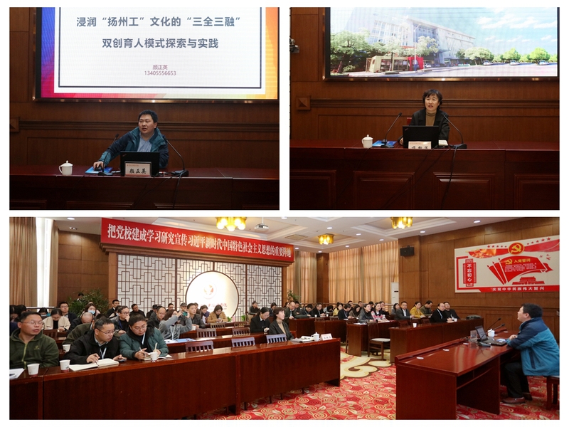 顏正英以《浸潤(rùn)“揚(yáng)州工”文化的“三全三融”雙創(chuàng)育人模式探索與實(shí)踐》為主題作專題講座。他介紹了揚(yáng)州工業(yè)職業(yè)技術(shù)學(xué)院雙創(chuàng)教育的基本概括以及特色。他強(qiáng)調(diào),雙創(chuàng)教育歸根到底是學(xué)校人才培養(yǎng)的一部分,是一項(xiàng)特別注重實(shí)踐能力培養(yǎng)的系統(tǒng)工程,必須堅(jiān)持“面向人人、面向崗位、面向未來(lái)”的原則,確立以崗位實(shí)踐創(chuàng)新人才培養(yǎng)為重點(diǎn),同時(shí)兼顧自主創(chuàng)業(yè)者培養(yǎng)的雙創(chuàng)教育目標(biāo),為學(xué)生未來(lái)崗位工作實(shí)踐創(chuàng)新賦能,為學(xué)生高質(zhì)量自主創(chuàng)業(yè)賦能,促進(jìn)畢業(yè)生高質(zhì)量就業(yè)創(chuàng)業(yè)。他指出,從專創(chuàng)融合課程到課程雙創(chuàng)的四個(gè)階段以及從科創(chuàng)融合到產(chǎn)創(chuàng)融合的產(chǎn)品孵化過(guò)程,要努力打造“專創(chuàng)融合+科創(chuàng)融合+產(chǎn)創(chuàng)融合”一體化模式的“創(chuàng)業(yè)型”雙創(chuàng)學(xué)院。最后,他針對(duì)校企合作推動(dòng)專創(chuàng)融合、科創(chuàng)融合、產(chǎn)創(chuàng)融合等方面提出思考。