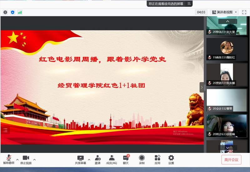 活動(dòng)中,社團(tuán)成員觀看了紅色視頻、黨史課程,悼念已故烈士,深刻學(xué)習(xí)他們的光輝事跡。社團(tuán)成員代表表示,一個(gè)個(gè)鮮活的銀幕形象仿佛就在眼前,我們不僅學(xué)習(xí)了中國(guó)共產(chǎn)黨的百年崢嶸歲月、百年奮斗歷史,同時(shí)也激勵(lì)著我們不忘初心,聽黨話,跟黨走。