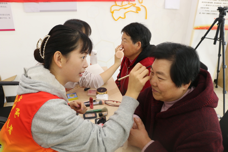 “奶奶,小心臺階,咱們先來這邊畫個妝,一會讓攝影師把您拍得美美的”“爺爺,您再調整下坐姿,我來幫您整理下發型,我們換個背景再來一張”這是藝術創意學院學生黨支部“定格年華,照亮幸福”我為群眾辦實事免費證件照拍攝主題黨日活動的現場縮影。