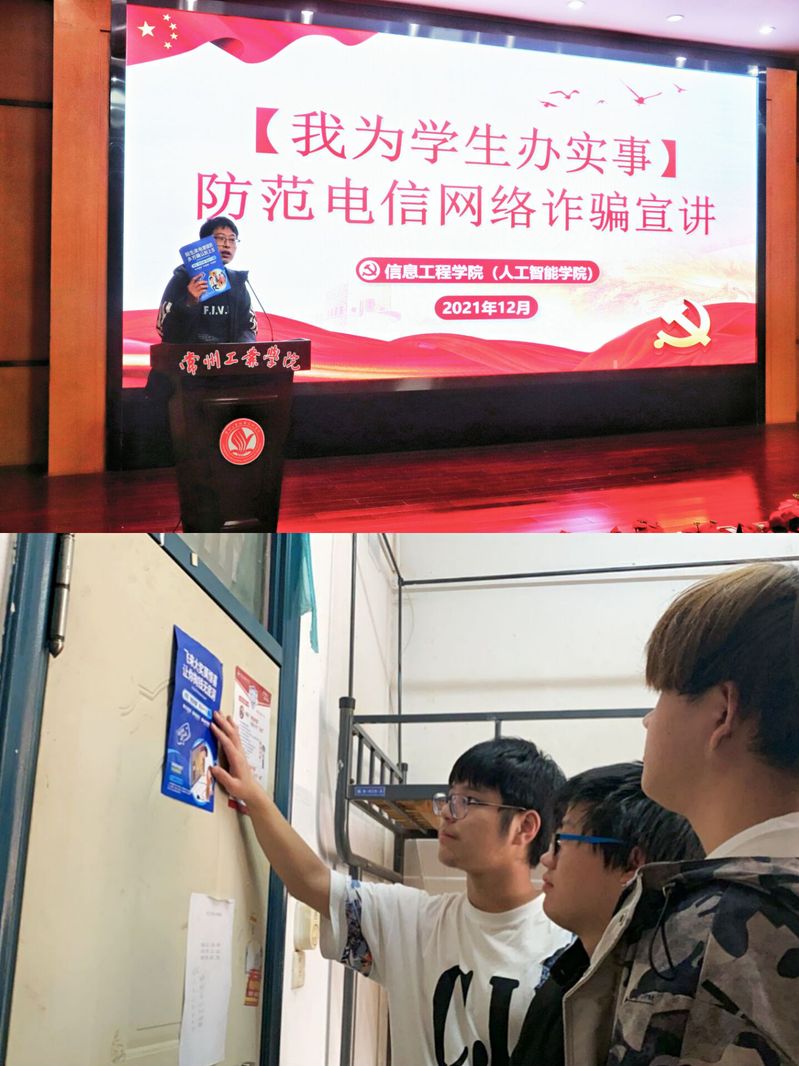 此外,信息工程學(xué)院還結(jié)合信息網(wǎng)絡(luò),通過(guò)及時(shí)在班級(jí)群轉(zhuǎn)發(fā)反詐知識(shí)和身邊典型案例,播放解析電信詐騙案例的短片等多種方式,開(kāi)展反詐宣傳工作,力求達(dá)到“線上線下處處有提醒,常見(jiàn)詐騙手段人人能識(shí)別”的效果。從而使廣大學(xué)生對(duì)電信網(wǎng)絡(luò)詐騙有更深刻的認(rèn)識(shí),提高反詐意識(shí),更加入腦入心,提醒同學(xué)們繃緊防范之弦,遠(yuǎn)離詐騙之害。