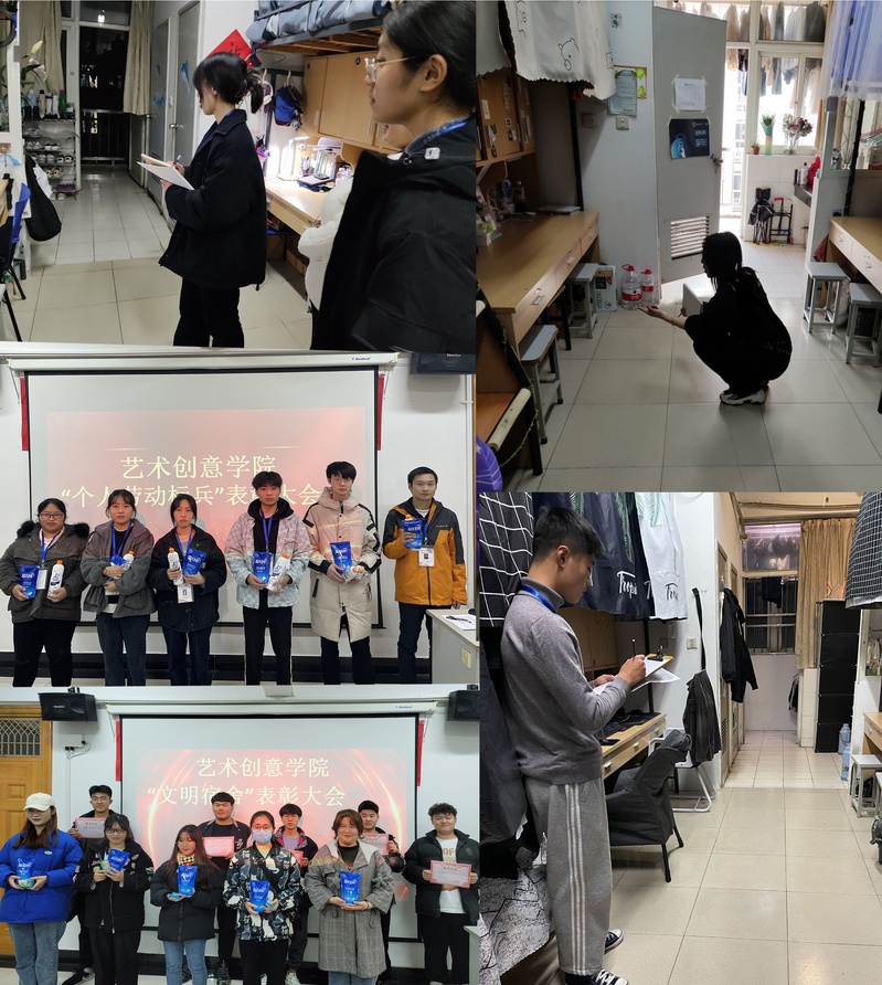 為了培養同學們良好的生活習慣,營造健康向上的生活環境,引導學生樹立正確的勞動觀,促進學生全面發展,11月23日至12月10日,藝術創意學院開展“文明宿舍”和“個人勞動標兵”評比活動。
