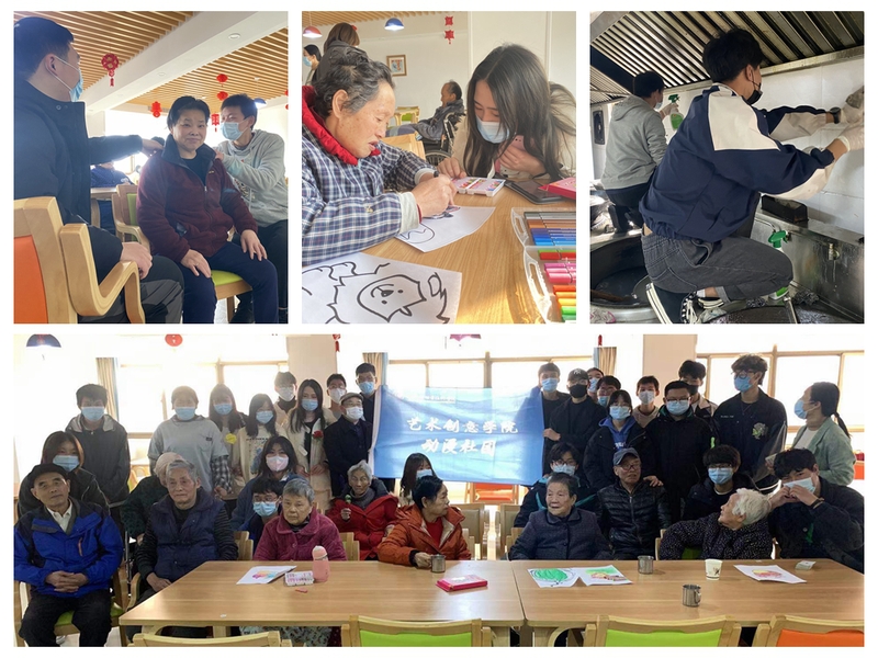 為培養當代大學生的社會實踐能力和社會公德意識,弘揚中華民族敬老愛老的傳統美德,藝術創意學院動漫社團指導老師與敬老院攜手開展敬老愛老活動,為養老院老人獻上一份愛心。藝術創意學院動漫社團組織30余名愛心志愿者于2021年12月8日前往常州市武進區玖玖大慈安養院看望關愛老人。