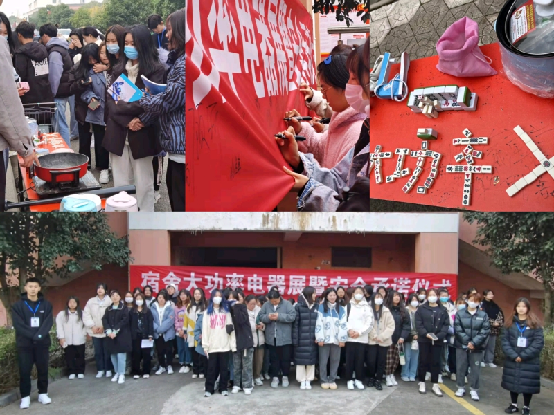 為貫徹落實中央、省市關于加強高校安全工作的具體要求,提高學生安全防范意識、保障師生生命安全,12月9日,我院組織學生在學生公寓樓下開展拒絕使用大功率電器倡議簽名活動暨違規電器實物展。活動由輔導員王杰與學生會成員組織開展,2020、2021級學生參與。