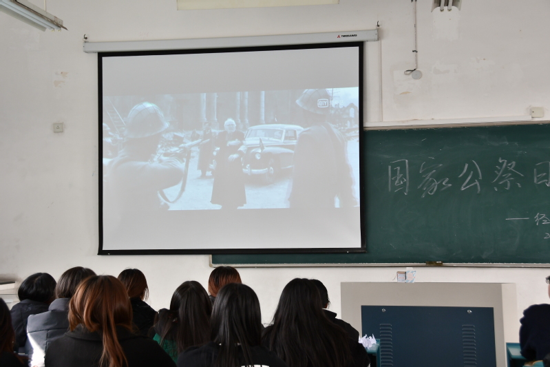 組織學(xué)生一同觀看主題電影《南京!南京!》。影片透過日本士兵和中國軍民的雙重視角和多重角色,用黑白色調(diào)陳述著那一段悲慘而又不爭的事實,揭示了戰(zhàn)爭對人性的摧殘。逝者往矣,永駐人心,這是一個民族的人道和正義;生者前行,瞻望未來,這是一個國家的光明與希望。