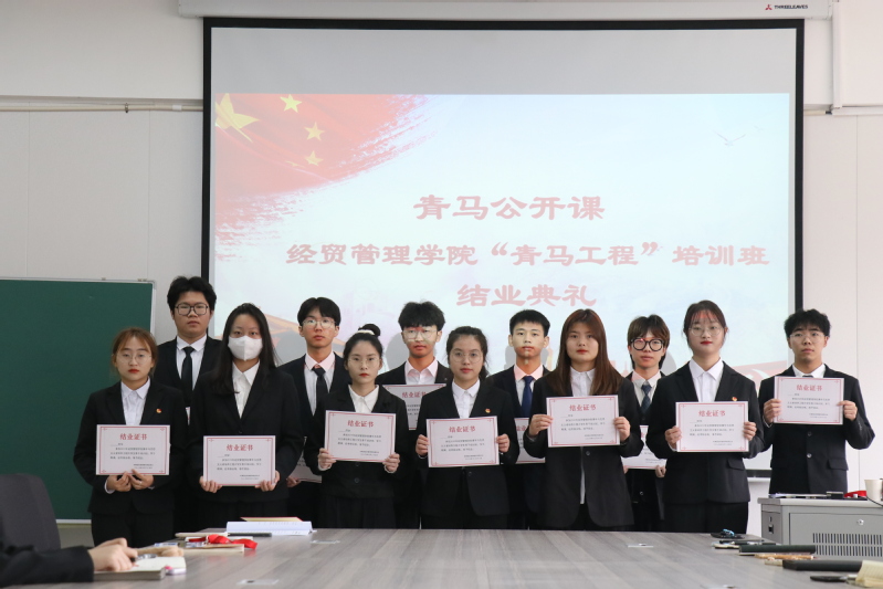 為不斷提高大學生骨干、團干部等青年群體的思想政治素質、政策理論水平、創新能力、實踐能力和組織協調能力,使他們進一步堅定信念,成長為中國特色社會主義事業的合格建設者和可靠接班人,經貿管理學院團委開展了為期一個月的“青馬工程”培訓班。12月12日晚,學院在敬業樓313舉辦“青馬工程”培訓班結業典禮暨表彰大會,學院黨總支書記陳曉敏、團委書記徐克選及全體學員參加了會議。