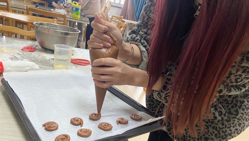 本次活動提前準備了蔓越莓餅干的教程和材料,活動過程中現場制作蔓越莓餅干。社員們體驗了揉面、捏面、烘烤等餅干制作的各個過程,伴隨著歡聲笑語,親手制作著屬于自己那份“愛”的餅干。隨著香味的彌漫,一份份精致的蔓越莓餅干也跟著出爐了,松軟香酥的餅干配著可愛的造型,看著就很誘人。社員們一邊品嘗著蔓越餅干,一邊討論心得,教室里充滿了歡聲笑語。這次活動社員們既收獲了烘焙知識和經驗,又放松了心情。