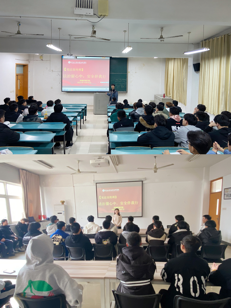 為加強憲法的宣傳和教育,強化學生的憲法觀念、憲法意識,維護憲法及法律的尊嚴,智能控制學院輔導員趙娜娜、陳云為學生們帶來別開生面的“憲法小課堂”,他們以憲法賦予公民的權利和義務為主線,向同學們闡述憲法的基本原則和主要內(nèi)容,介紹偉大祖國的輝煌成就,教導同學們做理想遠大、信念堅定、品德高尚、知法懂法的大學生。課堂上,輔導員以我問你答的方式與同學們進行互動交流,潛移默化地提高了同學們的法律意識和自我保護能力,從而激發(fā)了同學們的愛國情懷和學習憲法的熱情。