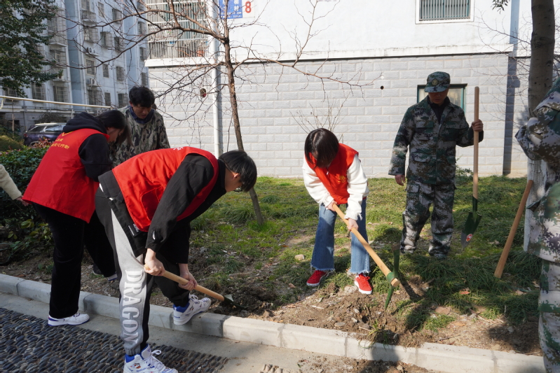 陽(yáng)春三月,大地回暖,萬(wàn)物蘇醒,正是種植的好時(shí)節(jié)。信息工程學(xué)院聯(lián)合常州市曉柳花苑社區(qū)共同開(kāi)展了植樹(shù)活動(dòng)。活動(dòng)地點(diǎn)在曉柳花苑社區(qū)內(nèi),社區(qū)道路兩旁裸露空地較多,多處綠化帶存在缺株斷行、黃土裸露現(xiàn)象,對(duì)綠化帶進(jìn)行補(bǔ)種、補(bǔ)栽十分必要。在植樹(shù)現(xiàn)場(chǎng),學(xué)生志愿者三兩一組,協(xié)作行動(dòng),一人揮舞著手中的鐵鍬在地面上挖出深坑,一人將樹(shù)苗放進(jìn)坑中并扶好樹(shù)苗,這時(shí)再進(jìn)行培土。樹(shù)苗栽好后,另一人將早已準(zhǔn)備的清水灌溉在樹(shù)苗周邊,清理周邊衛(wèi)生保潔工作……同學(xué)們?cè)韵乱黄戮G,共建魅力常州。這次植樹(shù)活動(dòng)寓教于樂(lè),樹(shù)木樹(shù)人,讓同學(xué)們體驗(yàn)到勞動(dòng)的樂(lè)趣,增強(qiáng)了協(xié)同合作和植綠護(hù)綠的意識(shí),也為城市綠化做出了貢獻(xiàn)。