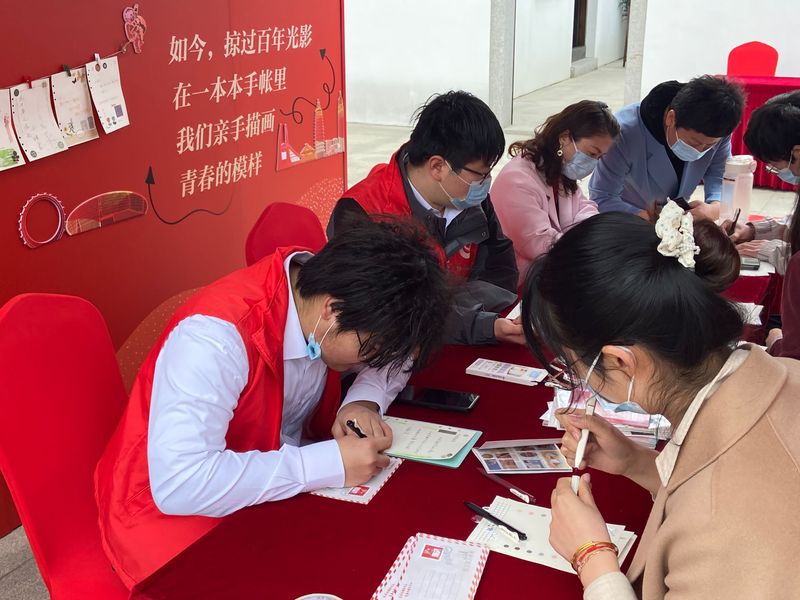 活動(dòng)中,我院志愿者在入口處進(jìn)行體溫測(cè)量和行程碼及健康碼的查驗(yàn),并且提醒參會(huì)人員佩戴好口罩,做好疫情防控措施;志愿者幫助現(xiàn)場(chǎng)進(jìn)行現(xiàn)場(chǎng)布置,舞臺(tái)刀具的搬運(yùn)。志愿者在快閃小屋中與嘉賓互動(dòng)交流,共同進(jìn)行手帳的制作,與參與活動(dòng)的各位嘉賓共同寫下對(duì)國家、對(duì)自己、對(duì)未來的美好展望以及衷心祝愿。在文化創(chuàng)意集市,我院志愿者向嘉賓積極介紹各種具有我們常州龍城特色的文創(chuàng)用品,并且給嘉賓喜歡的明信片上印上屬于我們常州印章。