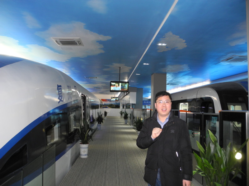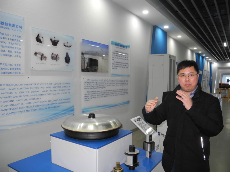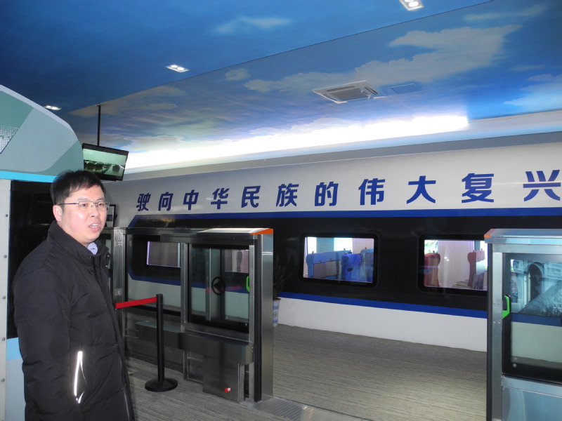 在公司展覽館講解軌道交通原理