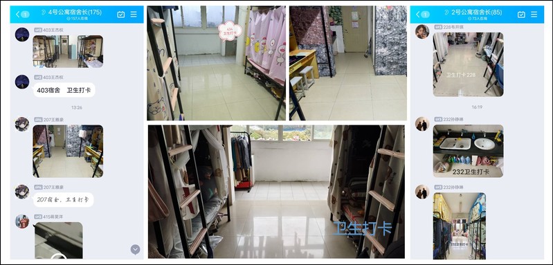 該項(xiàng)活動(dòng)共包含三個(gè)主題,分別是“停課不停學(xué),網(wǎng)課勤用心”學(xué)習(xí)打卡、“抗疫齊動(dòng)手,衛(wèi)生我最棒”衛(wèi)生打卡和“強(qiáng)身健體,你我相伴”文化打卡。通過(guò)各種主題的打卡活動(dòng)引導(dǎo)同學(xué)們?cè)谒奚釥I(yíng)造積極向上的學(xué)習(xí)氛圍和健康衛(wèi)生的生活環(huán)境,豐富宿舍內(nèi)成員的課余生活,以良好的健康和精神狀態(tài)對(duì)待每一天。