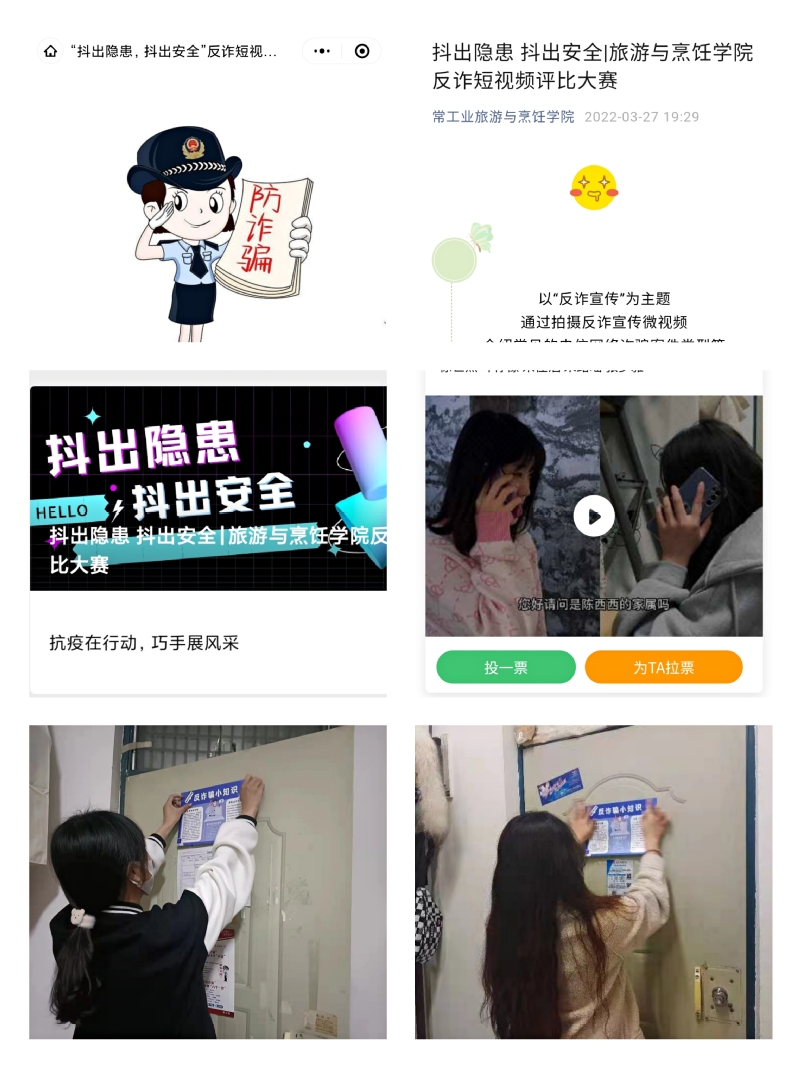 開展“抖出安全 抖出隱患”反詐短視頻安全教育活動。活動聚焦刷單詐騙、賭博詐騙、兼職詐騙、轉(zhuǎn)賣游戲賬號詐騙、冒充淘寶客服詐騙等高校高發(fā)的詐騙案件,學生結(jié)合真實案例,撰寫劇本,進行展演,深度挖掘和還原了身邊真實案例。本次活動共收到14份作品,并在新媒體平臺上進行宣傳和投票?;顒舆€深入學生公寓進行反詐宣傳頁的張貼警示,讓同學們對防詐反詐知識理解更深入、更透徹。本次“抖出安全 抖出隱患”反詐短視頻安全教育活動,調(diào)動了同學們參與防詐反詐的積極性,切實提高了學生的防騙意識,營造了安全穩(wěn)定的校園環(huán)境,同學們紛紛表示將一同加入到反詐隊伍中,堅決抵制詐騙行為。