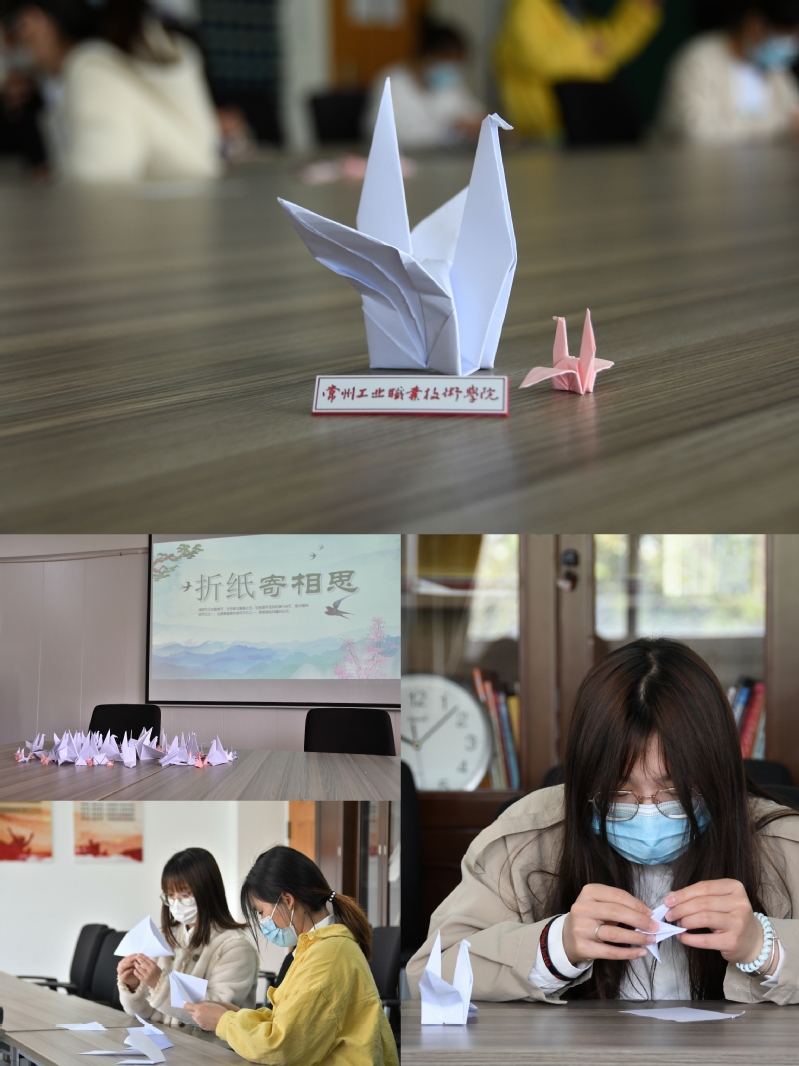 折鶴寄相思。從今不復聞謦亥,此后何堪憶笑容。唯愿紙鶴寄相思,追尋心愿憶音容。同學們自發組成一個個小組,采用綠色環保的祭奠方式,帶領不會折紙的同窗一起學習制作千紙鶴緬懷先烈,有些同學還將對英雄的寄語寫在了卡片上,折進了紙鶴里,用紙鶴寄相思。