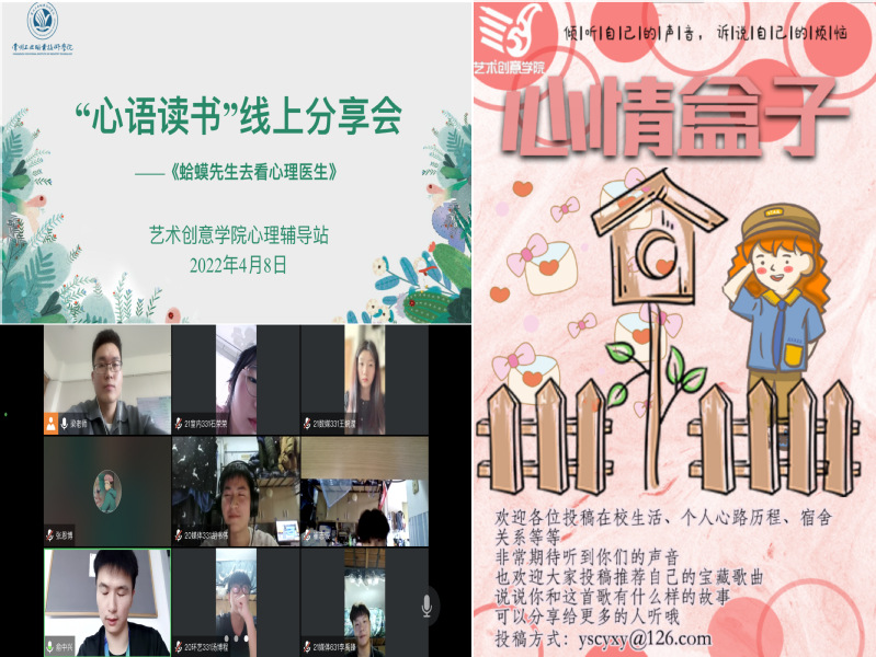 為更好地關注學生心理健康,疏導學生心理困惑,藝術創意學院開展“四月春光 點亮心靈”線上會心活動,打造“心情盒子”“心語讀書”“心理云班會”三個功能區,積極探索心理健康教育新途徑,促進學生健康成長和全面發展。