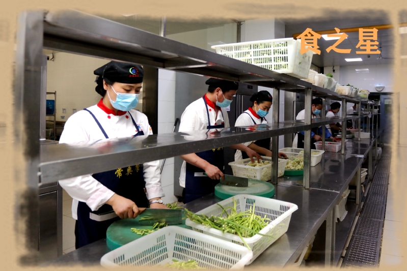 朝陽剛剛升起,月光還未灑盡,睡眼朦朧的他們就已早早起床。他們需要供應校內一萬多名師生員工一天的吃喝。鍋柄輕翻,酸甜苦辣都在一起;大勺一晃,山川百味匯聚一堂。防控升級對于目前在校的食堂工作人員來說,無疑是份壓力。校外外賣被禁止,再加上部分商鋪工作人員無法來校,每日食堂的工作量比起之前增加了數倍之多。提前進行備餐,清點食材數目,是他們每天的必做項目。無法離校,在校園內的住宿,便成為了一大難題。不過這并不能動搖他們的心。因為他們必須保證同學們“吃的安心,吃的放心”。他們是校園里的一顆顆“食之星”。