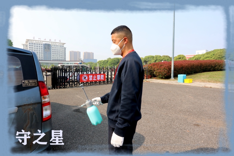 你轉身,匆匆走進風雨,我看見千萬個可愛的你,不回頭向硝煙里奔去。新冠肺炎疫情之中,有千千萬萬各行各業的人們,奔赴沒有硝煙的戰場。在我們常工業的校園里也有這么一批人,默默守護著同學們。