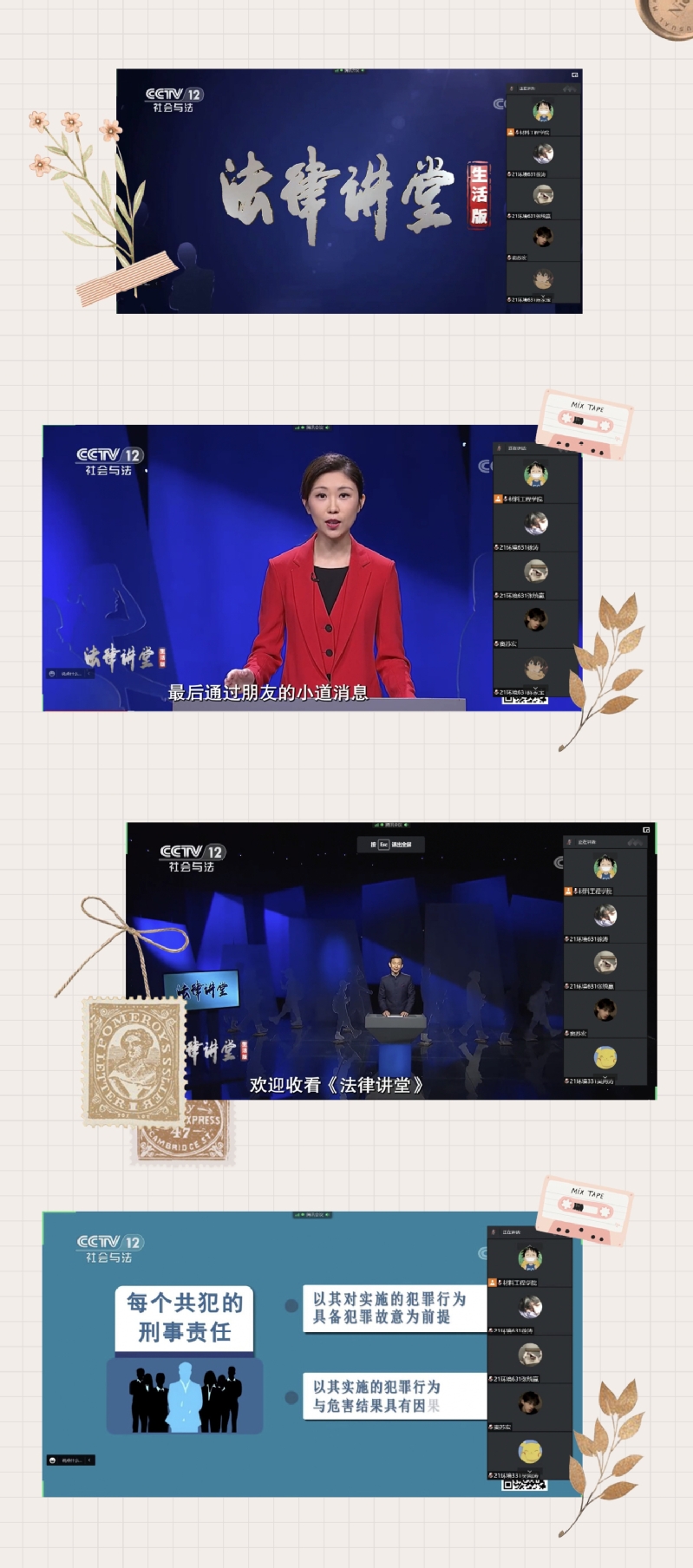 法律觀影。為進一步教育大學生如何運用法律來維護自己的合法權益,如何在生活、工作中規范自己的言行,踐行自己的合法權利,材料工程學院線上組織觀看了相關法治宣傳教育微視頻。活動中,我院學生按時簽到,按時簽退,禮貌互動,表現出相當高的觀影素質。