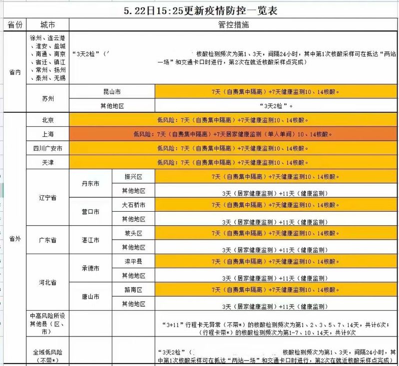 管控規(guī)定解釋說明:“三天兩檢”指抵達常州后第1天、第3天核酸采樣,間隔24小時。“三天兩檢”、“7+7”、“3+11”的管控措施都需來常后進行。最后一次核酸檢測須在入校前24小時內(nèi)進行。