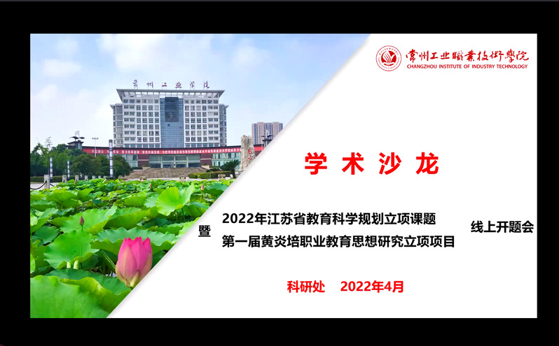 本次活動以2022年立項課題開題匯報為契機,主要涵蓋江蘇省教育科學“十四五”規劃課題和第一屆黃炎培職業教育思想研究14項優秀立項課題。這既是對課題組項目研究方向和內容、研究計劃和進度的展示和檢驗,也是一次面向學校教師介紹新時代職業教育政策走向、職教研究熱點切入點以及目前我校教學改革重點難點的學術交流學習會議。100多位教師全程在線聆聽開題匯報,學習優秀立項課題的前沿研究理論和先進研究方法,與會人員都受益匪淺。