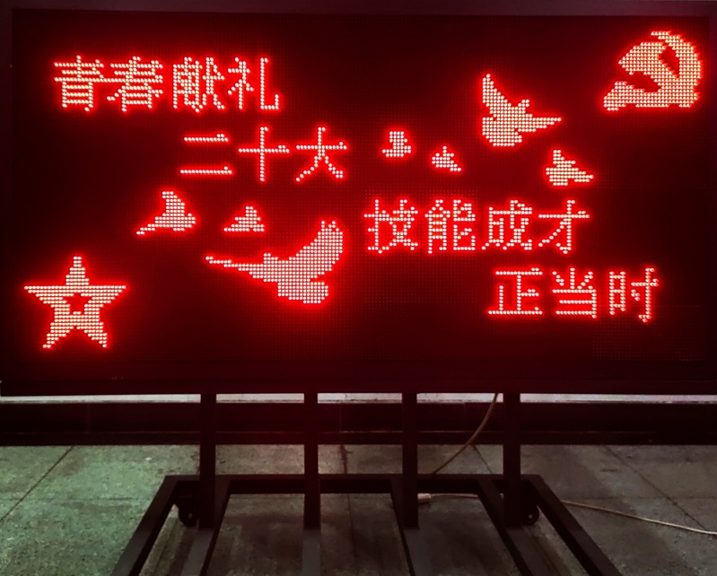 軌道交通學院的同學們在CAD實訓、電工實訓、鉗工實訓、LED封裝實訓等課程的學習中,獲得了多種實用職業技能的提升。在此次活動的引領下,同學們充分發揮自己的創造力和動手能力,通過LED屏、燈板、CAD圖等不同形式,創作出了形式多樣的作品,如“黨旗所指,團旗所向”燈珠板、“青春獻禮二十大”LED展示屏、“畫出黨徽獻給黨”CAD制圖等。向黨的二十大獻禮的同時,也展現著“技能成才,強國有我”的壯志和決心。此外,不少同學也利用自己的藝術特長,創作了繪畫、書法等作品,致敬技能報國和工匠精神。本次征集中的優秀作品通過學院公眾號、公寓文化宣傳欄和課堂分享等多種形式進行了展示。