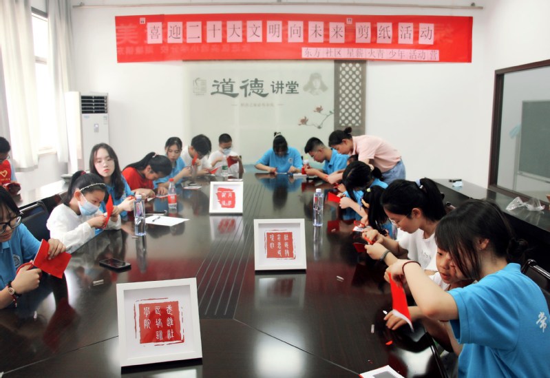 實(shí)際行動(dòng)助力“雙減”落地。7月15日,“小水滴”公益暑托實(shí)踐團(tuán)來(lái)到東方社區(qū)圖書(shū)館,開(kāi)展了“喜迎二十大,文明向未來(lái)”手工剪紙活動(dòng)。在老師耐心的講解和指點(diǎn)下,大家很快學(xué)會(huì)了剪紙的基本技巧,來(lái)自幼兒專業(yè)的志愿者們用所學(xué)的手工專業(yè)知識(shí),和小朋友們一同開(kāi)啟了一場(chǎng)剪紙之旅。寓樂(lè)于刀,寓教于紙,在剪刀與紙的碰撞中常州特色剪紙文化和紅色教育也在實(shí)踐中被孩子們進(jìn)一步感知。7月21日,“小水滴”公益暑托實(shí)踐團(tuán)”和東方社區(qū)開(kāi)展“手拉手,游青果”主題旅游活動(dòng),結(jié)合學(xué)院旅游專業(yè)特色,利用本地的文化資源,“小水滴”們和小朋友一對(duì)一結(jié)對(duì)攜手講述“江南名士第一巷”青果巷歷史,寓樂(lè)于游,通過(guò)實(shí)地體驗(yàn),介紹青果巷的歷史文化,讓孩子們?cè)谟瓮鎸?shí)踐中進(jìn)一步了解家鄉(xiāng)濃厚的人文歷史,做推廣家鄉(xiāng)旅游的“小小代言人”。