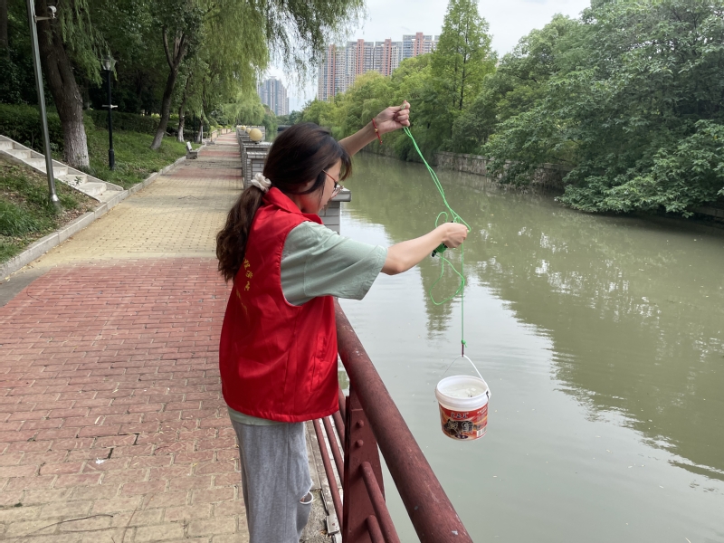 采水樣。為探明目前湖塘河水質現狀及雨水口排污對湖塘河的影響,團隊成員將水質監測點從南到北均勻地布置在紅旗橋、大慶橋、大囍橋及湖塘河樞紐處,通過分層采水器采集水樣,利用便攜式檢測儀得到湖塘河中段pH和溶解氧,利用定量采樣桶采集南甸苑、城中花苑、花東二村雨水管出口的水質樣品。活動真正將課堂及校企“工學交替”等教學環節中所學的環境監測理論應用到實踐活動任務當中,團隊成員的實際操作技能得到了極大提升。